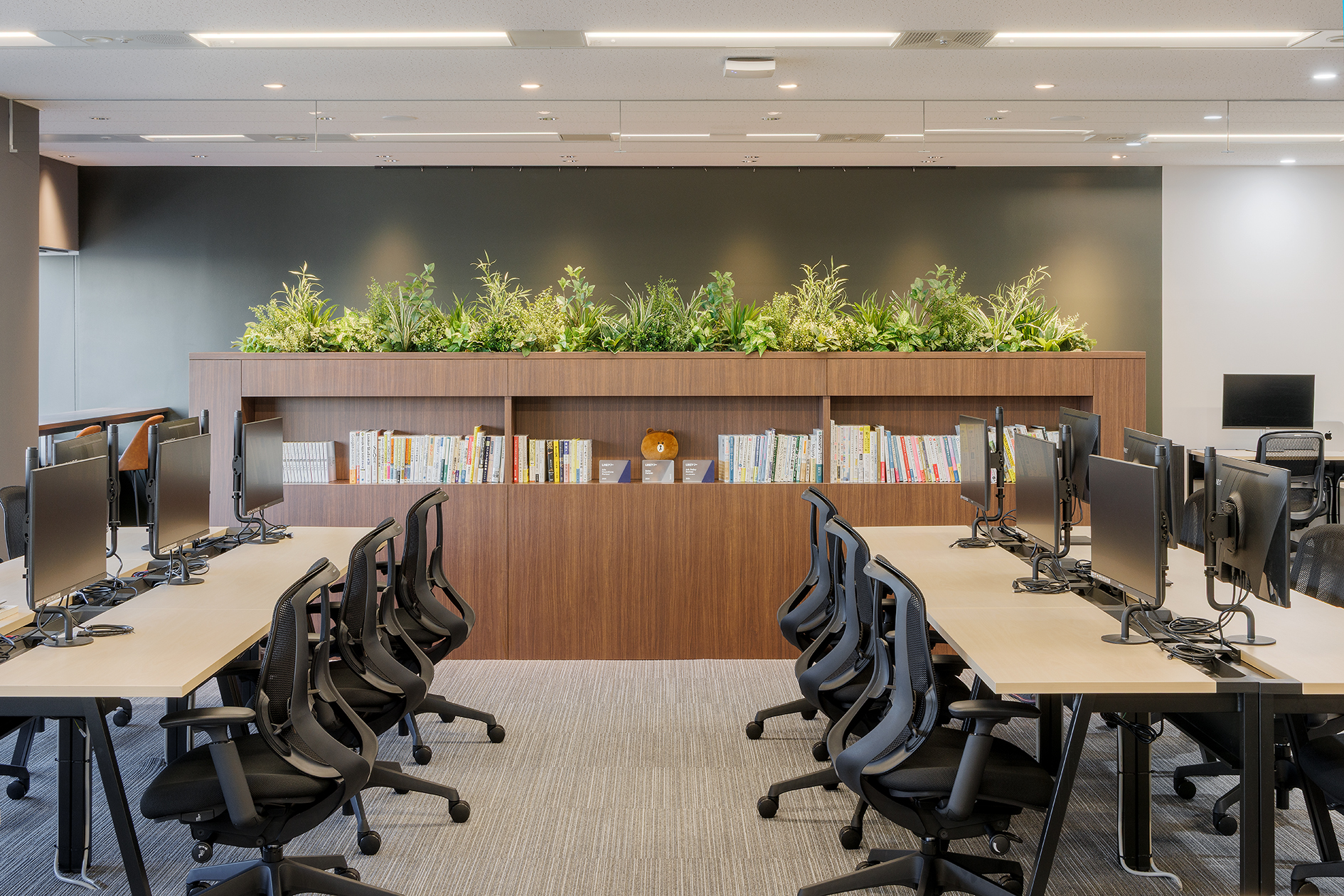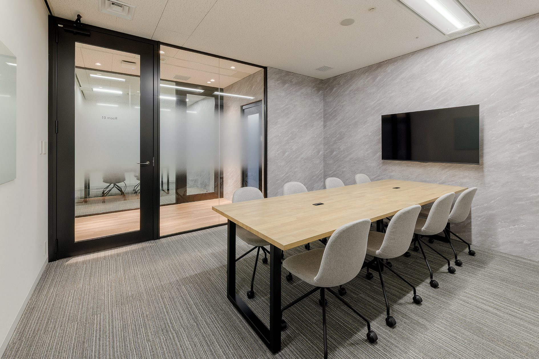 バックオフィスは、業務に集中しやすい環境を重視し、空間全体を無彩色系の色相で統一しました。